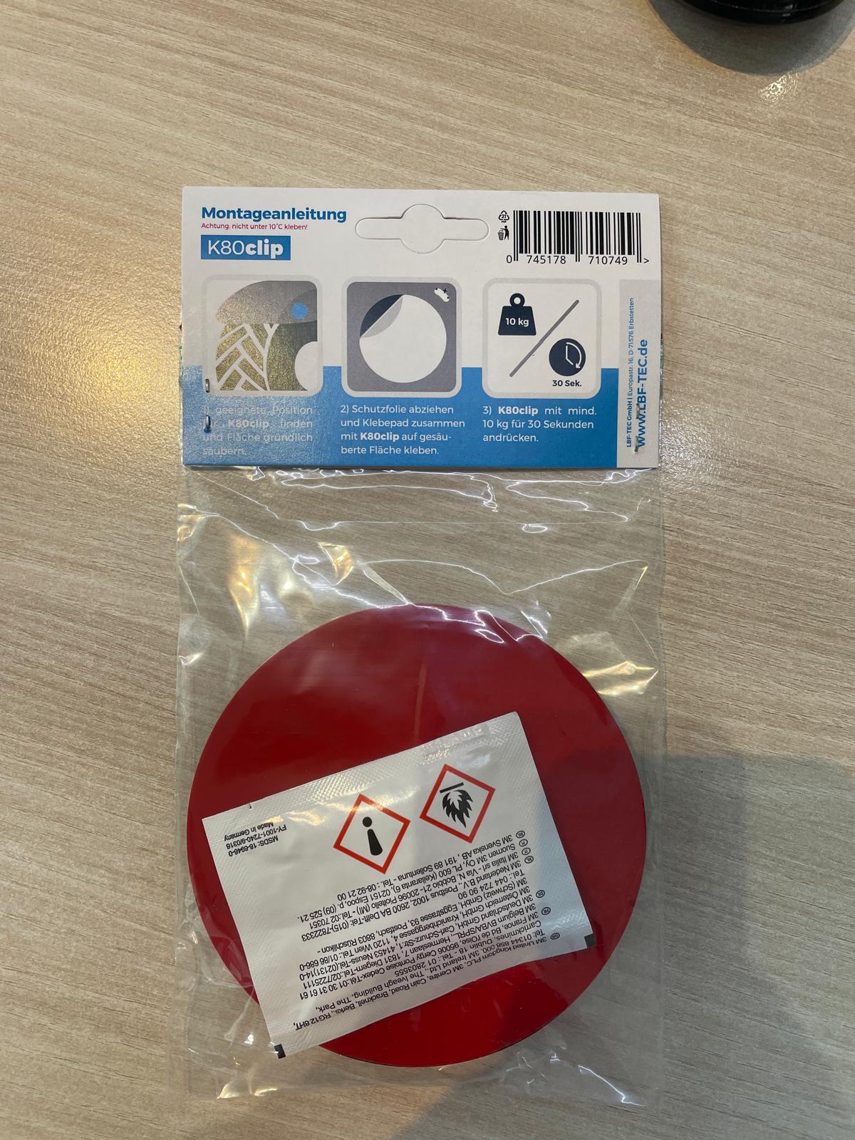 The holder is simply stuck on or screwed in place. This means that the blue cap for the K80 ball attachment can always be stored cleanly and will not get lost.